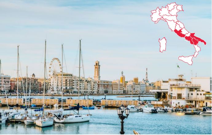 Café no hotel. Manhã livre ou excursão opcional (não incluso) a Pompeia. No horário agendado, encontro com o motorista no hotel e transfer até Caserta, onde embarcará no trem para Bari. Ao chegar, recepção pelo motorista e transfer ao hotel. Check-in e pernoite.