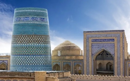 Café da manhã no hotel. Khiva (Jiva) é uma cidade-museu, localizada no deserto, considerada a pérola do Uzbequistão. Antigamente, as caravanas da Grande Rota da Seda cruzavam esta cidade. Ruas de paralelepípedos, mesquitas de barro, padrões elaborados e majestosas muralhas das fortalezas impressionarão até o viajante mais experiente. Segundo a lenda, Khiva cresceu em torno de um poço chamado Keivah, que foi cavado por Sem, filho do justo Noé. Arqueólogos afirmam que Khiva já existia no século VI a.C. e de fato se chamava Kheyvak. O poço de mesmo nome ainda está de pé no centro da cidade. Antes da conquista árabe, Khiva era uma cidade zoroastrista. Em 712, depois que Qutayb Ibn Muslim chegou ao poder em Khiva, quase todos os cientistas e representantes das famílias nobres foram aniquilados. Nos séculos IX-XI, Khiva se tornou um centro religioso e científico, onde trabalharam três personalidades famosas como Al-Khorezmi e Al-Beruni. Em 1220, Khiva foi destruída pelos soldados de Gengis Khan. No século XVI, as tribos nômades uzbeques chegaram a Khiva. Em 1598, Khiva foi proclamada capital do Canato de Khiva e, na primeira metade do século XVII, tornou-se um dos centros islâmicos. Conheceremos ali o coração fortificado de Khiva, conhecido como Itchan Kala, além de visitar a Kalta Minor, o Castelo Kunya Ark, a Madraça Mohammed Rahim Khan, o Minarete e Madraça Islom Khodja e a Madraça Allakuli Khan. Todo o Centro Histórico é considerado Patrimônio Mundial da UNESCO. Almoço em um restaurante local. À tarde, visita ao complexo arquitetônico Tash Hovli (harém do século XIX), o Mausoléu de Pahlavan Mahmud (séculos XIV - XVIII), a Mesquita Juma (século X) e o Mausoléu de Said Allauddin. Hospedagem.